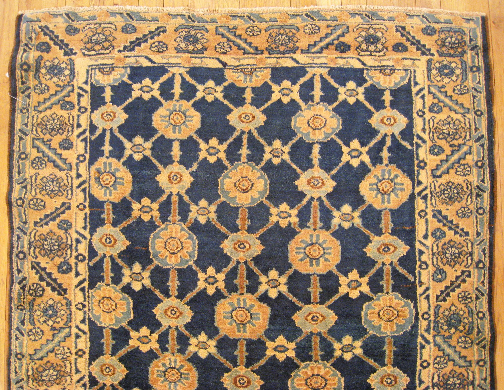| Description: | Antique Northwest Persian Oriental Rug An antique N.W. Persian oriental rug, size 5'6" x 3'6", circa 1910-1920. This handsome hand-woven floro-geometric rug features repeating rosettes connected by trellis motifs in the deep blue central field. The field is enclosed within a whimsical soft red outer border punctuated by stylized serrated leaves and flower heads. The short wool pile is even throughout, and the rug is in excellent condition for its age and weaving style. A great value, and an excellent choice for an entry way, a foyer, a living space, a bedroom, or for use as wall decor or as a decorative accent! Bring this beautiful rug home today, with FREE SHIPPING!