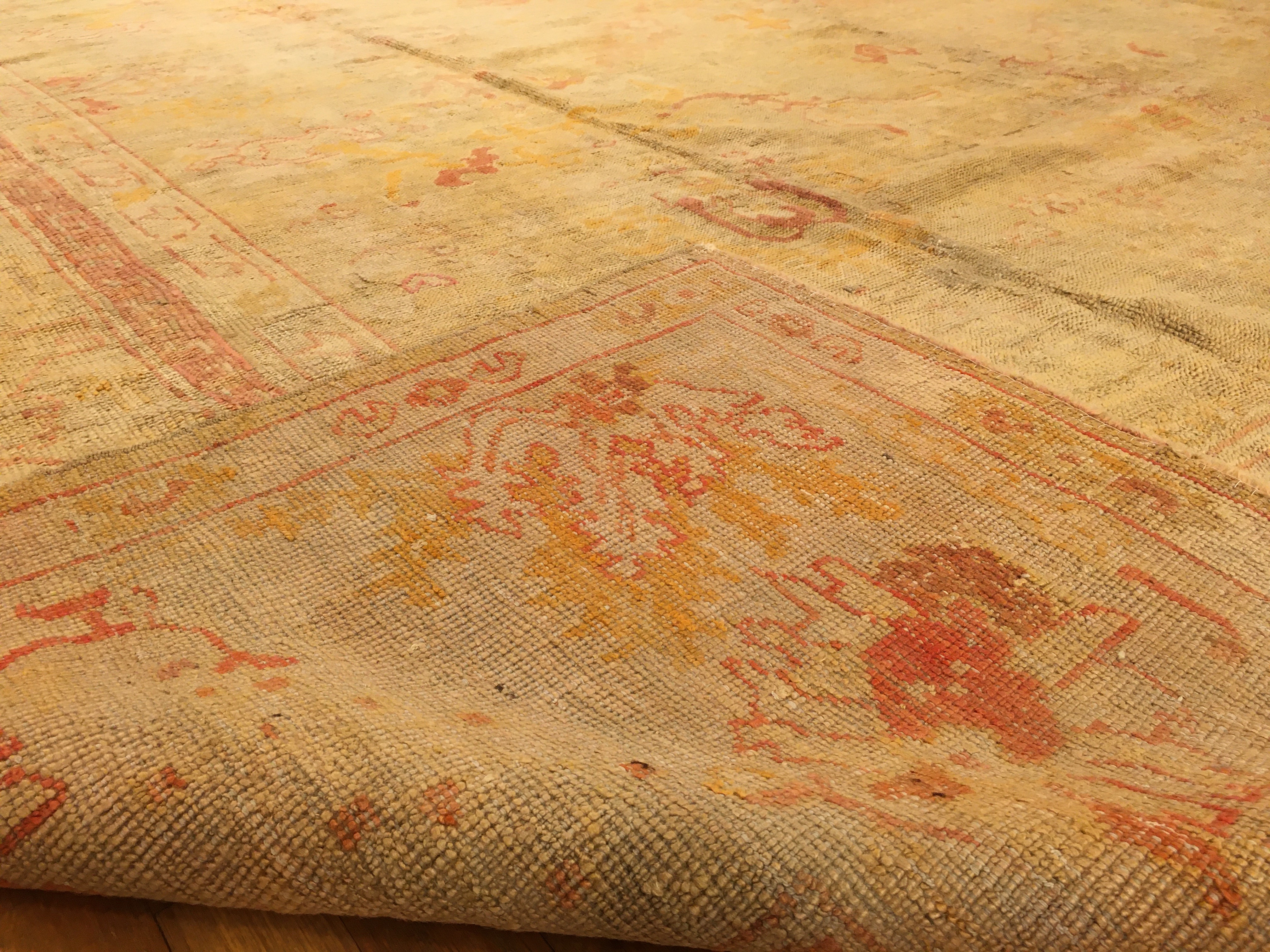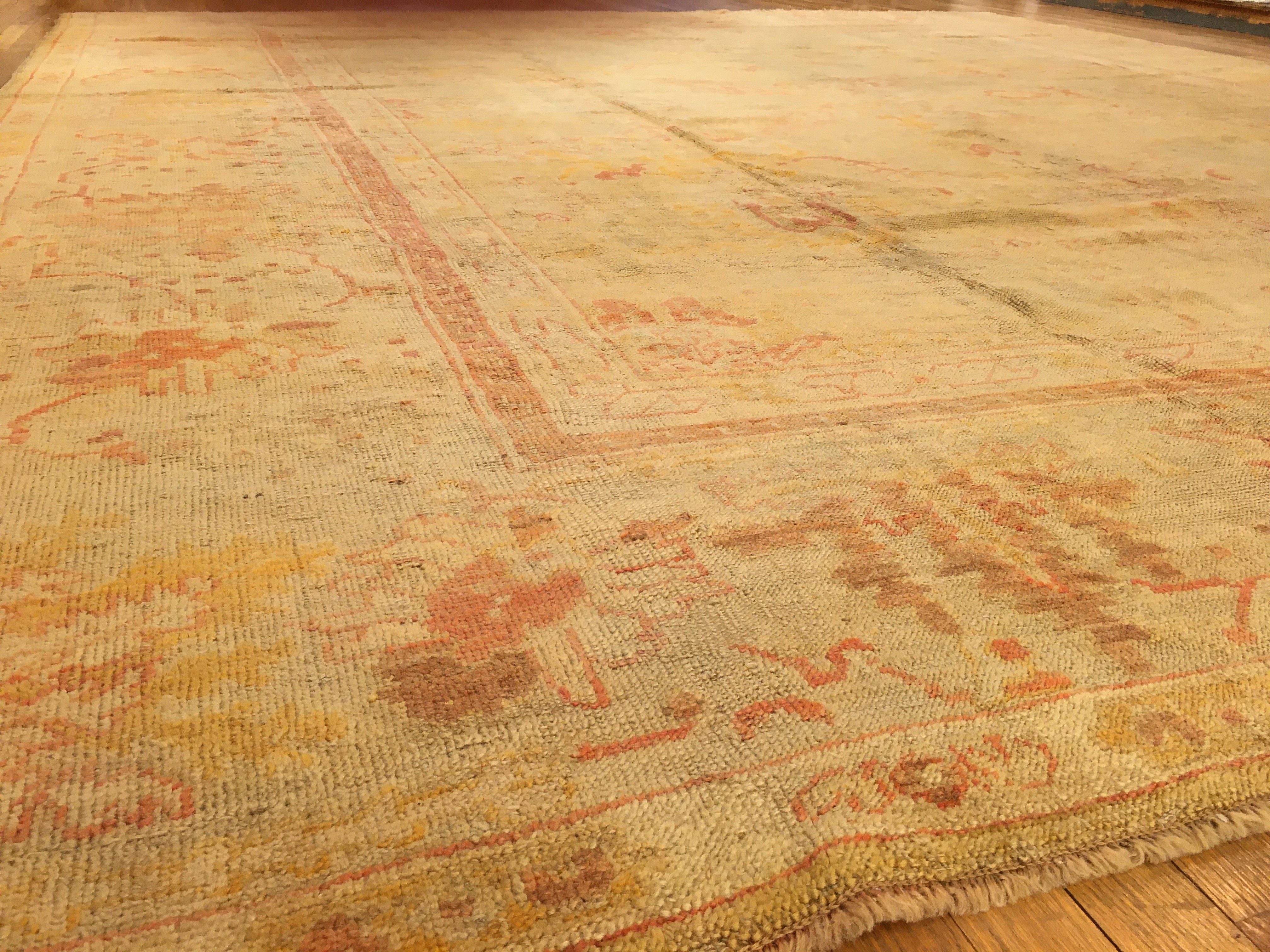 Antique Turkish Oushak Decorative Oriental Carpet, Room size, with Ivory Field